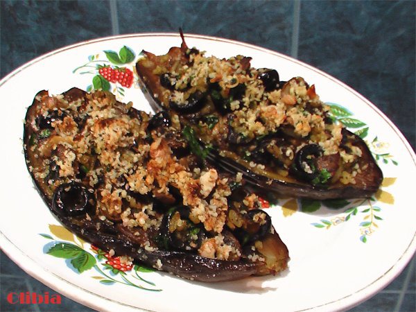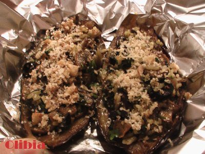 Начинаем наши баклажанчики, украшаем тертыми орешками и в духовку минут на 15 при 180 градусах