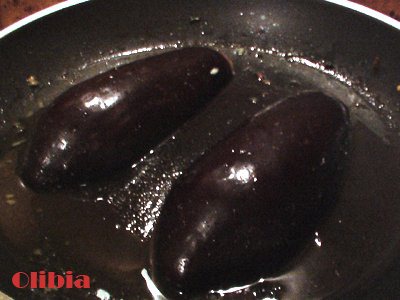 Обжарить баклажаны до готовности минут по 5 -8 с обоих сторон. Осторожно ложкой вынуть мякоть из баклажанов, не повредив кожуру.