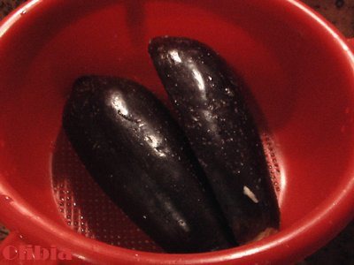 Разрезаем баклажан на 2 части, натираем солью (без фанатизма, а то соленый будет) оставить на несколько минут, чтобы они отдали горечь. А мы пока займемся начинкой.