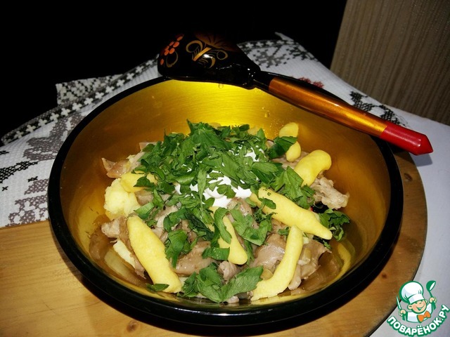 6. Все, объединяем грибы и картофель в тарелке.
