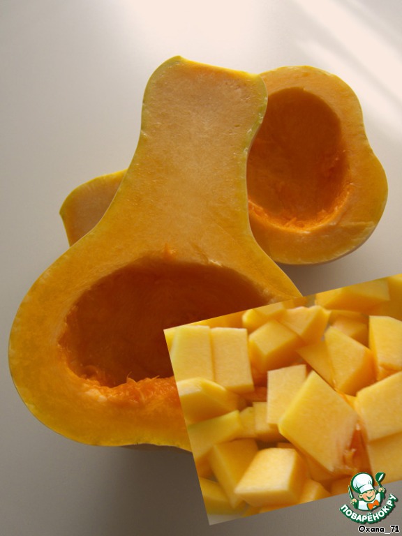 В высокой посуде подрумяниваем слегка лук-порей ( не очень сильно! ) на растительным маслом, добавляем 2 ст.ложки белого вина, закрываем крыжкой и оставляем тушиться на медленном огне минут 5-7. Добавляем тыкву и тушим около 10 минут.