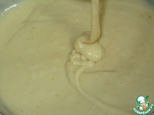 Смешиваем йогурт, масло, цедру и сок апельсина, вносим взбитые яйца.