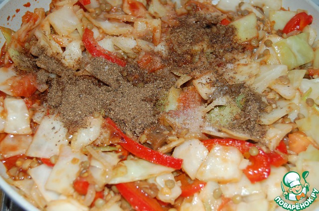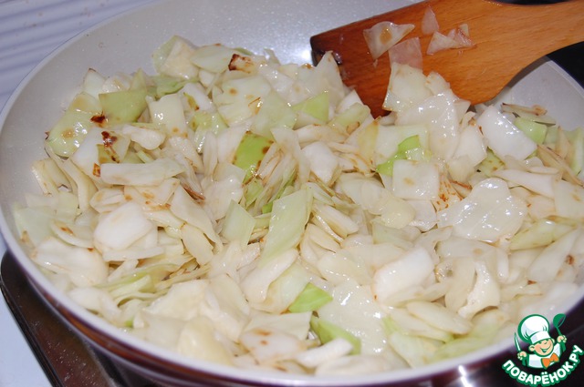 Разогрейте в глубокой сковородке 2 ст. л. масла и обжарьте на среднем огне капусту, помешивая, 5 мин. Переложите капусту на тарелку.