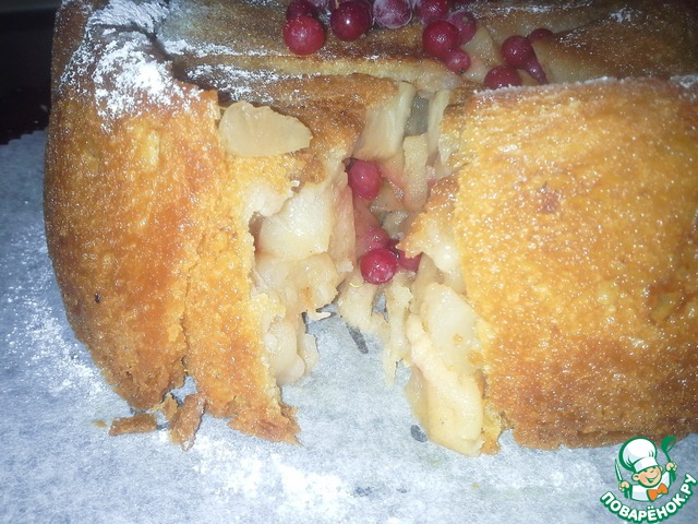 Пирог получается очень сочным и ароматным, так как внутри него теста нет, одни яблочки. А хлебушек, пропитанный маслом и соком яблок становится очень вкусным. Приятного аппетита!