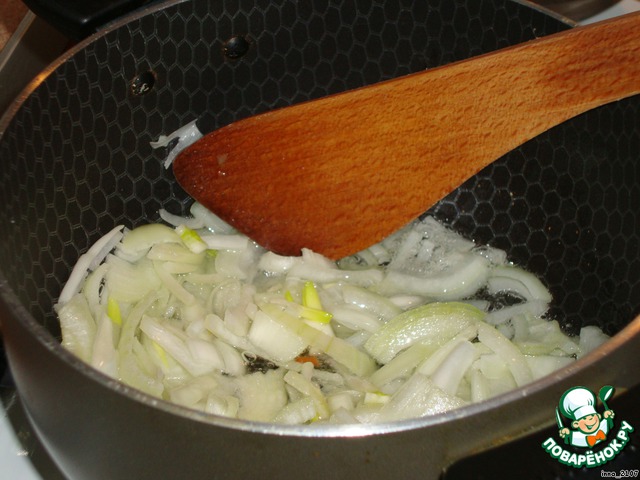 Обжарить слегка лук, добавить морковь и обжаривать ещё минут 5.