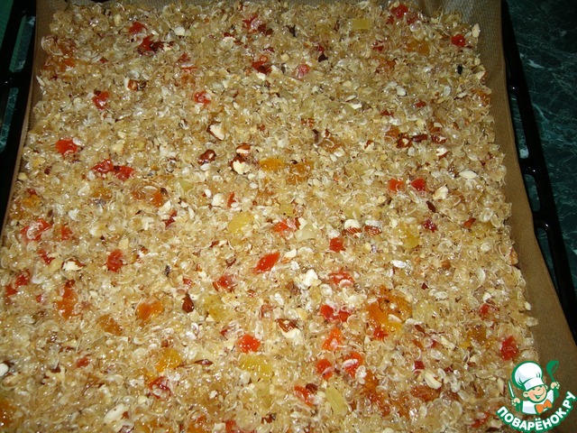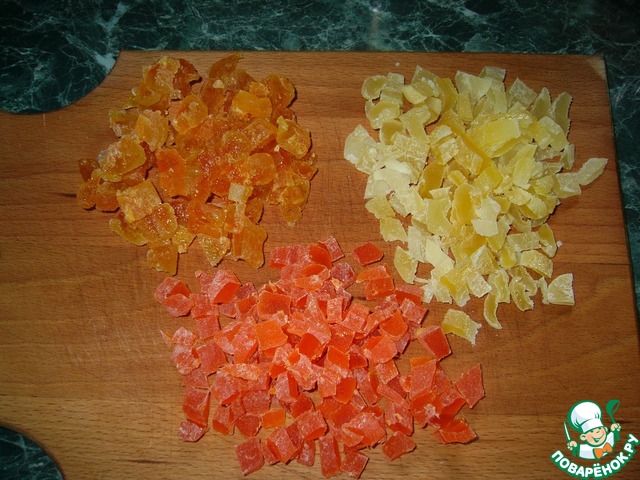 Вяленые фрукты мелко нарезать (у меня всё мягкое, если надо-предварительно замочите в гор. воде)