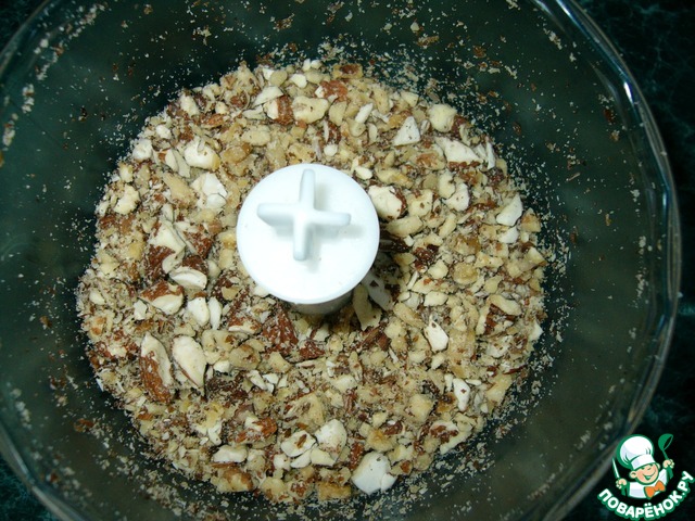 Орехи крупно измельчить в блендере (или порубить ножом)