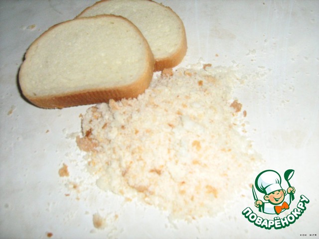 Булку натираем на мелкой тёрке и просеиваем через дуршлаг.