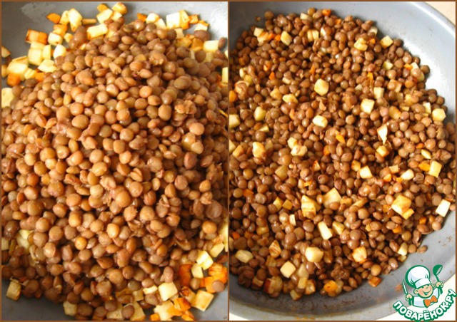 Подмешать готовую чечевицу.