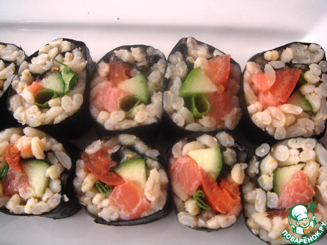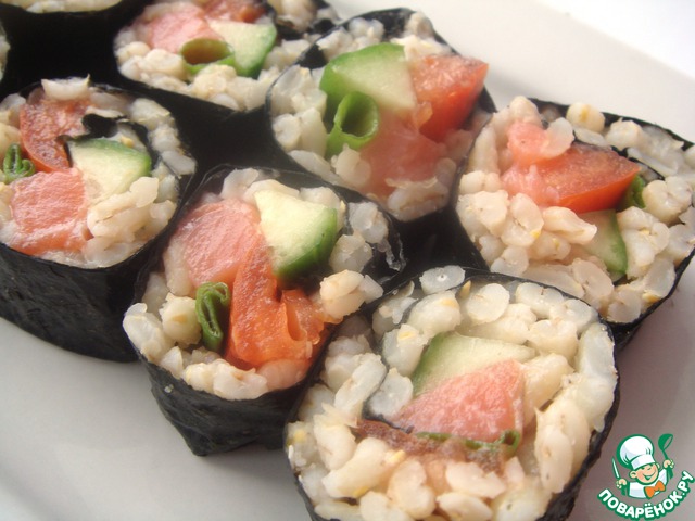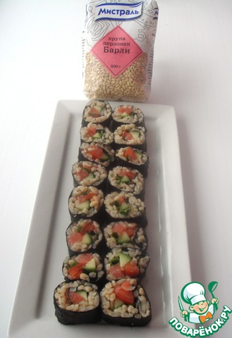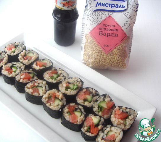 | Перловую крупу по праву называют "жемчужной" - название «перловая» происходит от слова «перл», что означает «жемчужина», и связано это с тем, что форма и цвет перловых крупинок схожи с речным жемчугом. По-другому перловую крупу еще называют «мужицким рисом». Перловая крупа – богатый источник аминокислот. Так, в ней, к примеру, содержится лизин, участвующий в выработке коллагена, сохраняющий гладкость и упругость кожи, и замедляющий процесс появления морщин. Перловка также богата микроэлементами и витаминами, она содержит много кальция, калия, железа, в ней также есть марганец, медь, цинк, кобальт, молибден, никель, хром, стронций, йод, фосфор и бром. Такой огромный набор важных микроэлементов дополняется и витаминами, к примеру, витаминами группы В, витамином А, Е, D, РР. Предлагаю вам приготовить роллы из перловки, потому что это не только вкусно и постно, но еще и очень полезно. Попробуйте! |