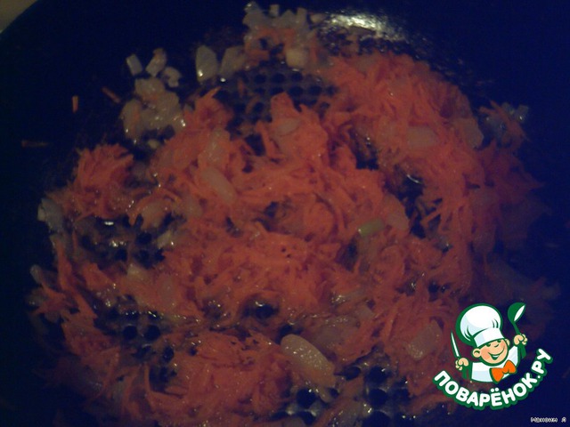 Затем обжариваем лук и морковь.