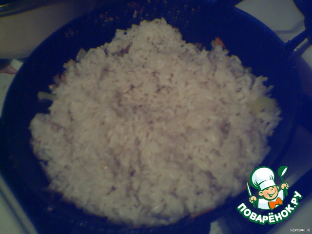Потом добавляем почти готовый рис.