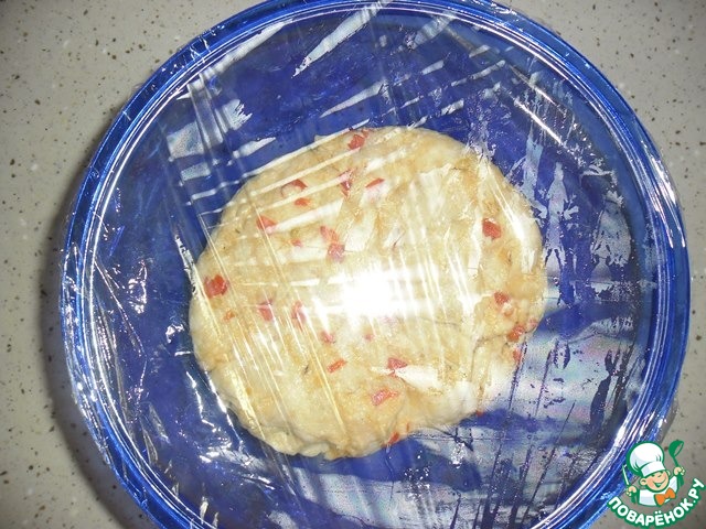 Тесто накрыть пищевой плёнкой, оставить подниматься (приблизительно на 1 час).