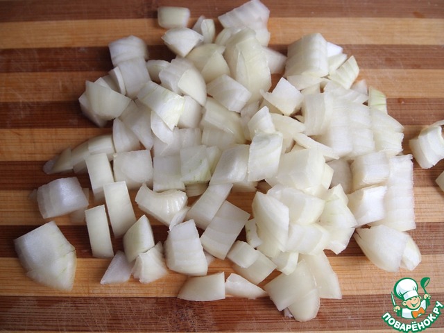 Тем временем почистить лук, порезать кубиками.
