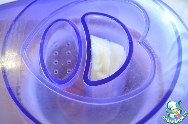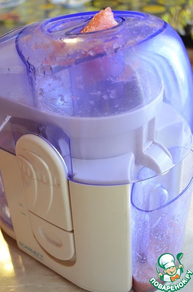 Поместить кусочки дыни в специальное отверстие соковыжималки.