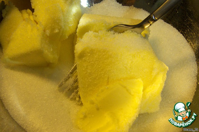 Масло взбить с сахаром и тёртой лимонной цедрой.