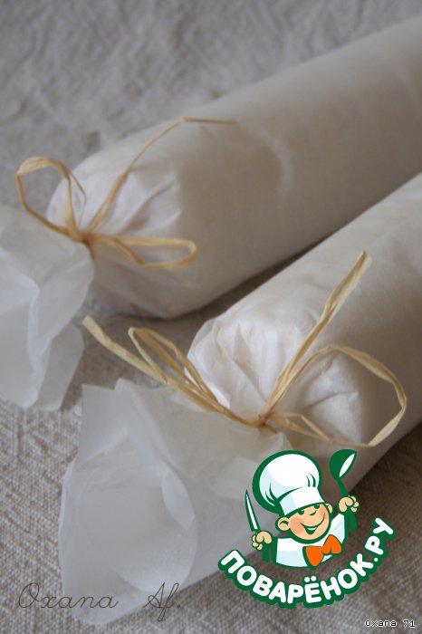 Тесто разделить на две части и скатать две колбаски, диаметром примерно 4-5 см. Завернуть в пищевую плёнку и поставить в холодильник на 1 час (или на ночь, как сделала я).