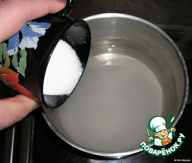 Смешайте 2 стакана сахара, 2 стакана воды и 1 ст.л. лимонного сока.