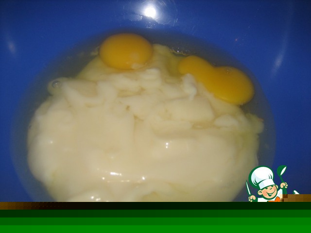 Готовим тесто: взбиваем сгущенное молоко с 2-мя яйцами