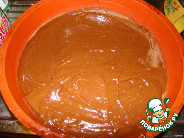 Для теста.Шоколад растопим с маслом на водяной бане.Отдельно смешаем яйца с сахаром затем добавим разрыхлитель+ муку и соединяем тесто с шоколадом.Заливаем в форму отправляем в духовку на 30 минут выпекаем при температуре 200 градусов