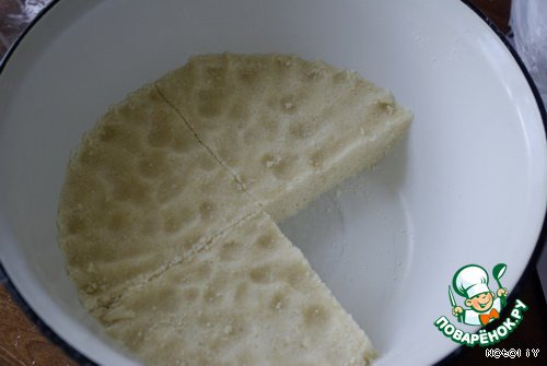 Утрамбовываем ее и делим на части по количеству нашего теста.