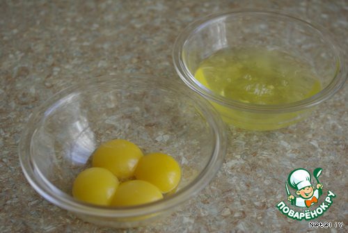 Отделить желтки от белков. Белки нам не понадобятся (отложим до следующего рецепта).