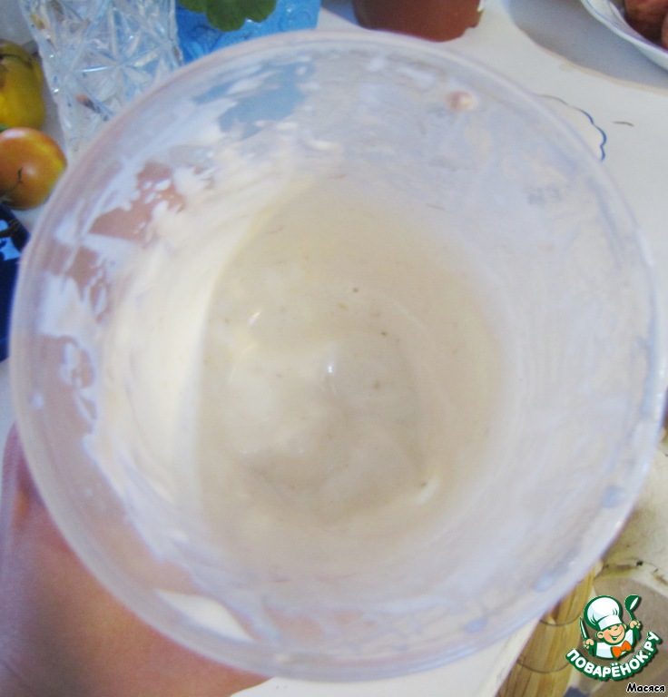 Сироп слегка остужаем, добавляем желатин и перемешиваем до растворения. Затем начинает взбивать смесь миксером, примерно 10 минут. Хорошо это делать в большой емкости, т.к. масса заметно увеличивается в размере.