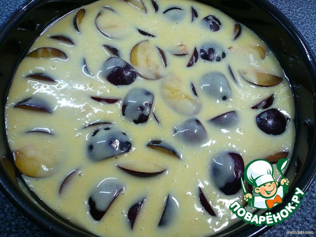 Оставшееся тесто аккуратно вылить сверху на фрукты.