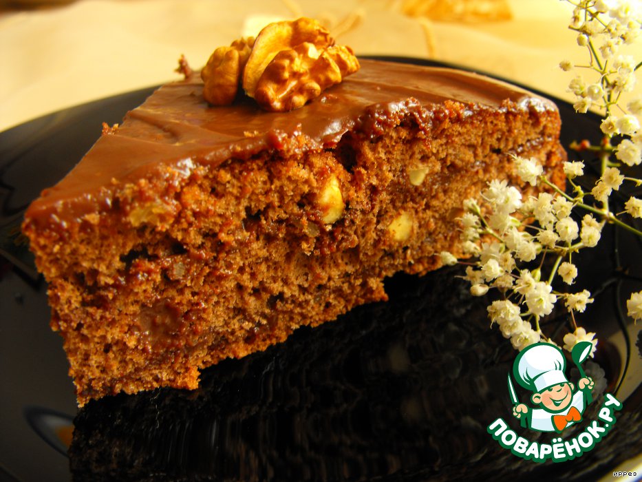 Шоколадно-ореховый торт с мягким кремом