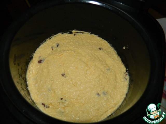 Добавляем изюм. И выливаем в чашу мультиварки. Готовим на режиме "Выпечка" 50 минут.