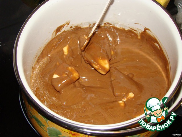 Шоколад с оставшимся маслом расплавим на водяной бане