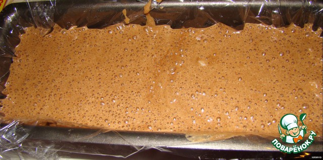 Яичную массу смешайте с шоколадом, залейте в форму.