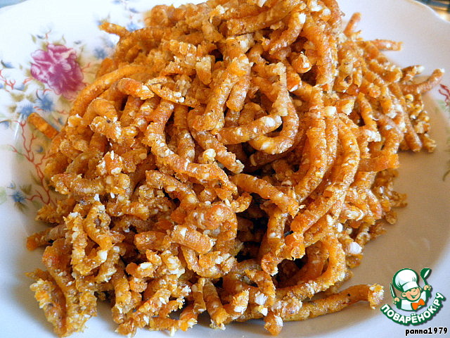 Из одной порции получается две такие колбаски. Чайная ложка дана для сравнения размера.