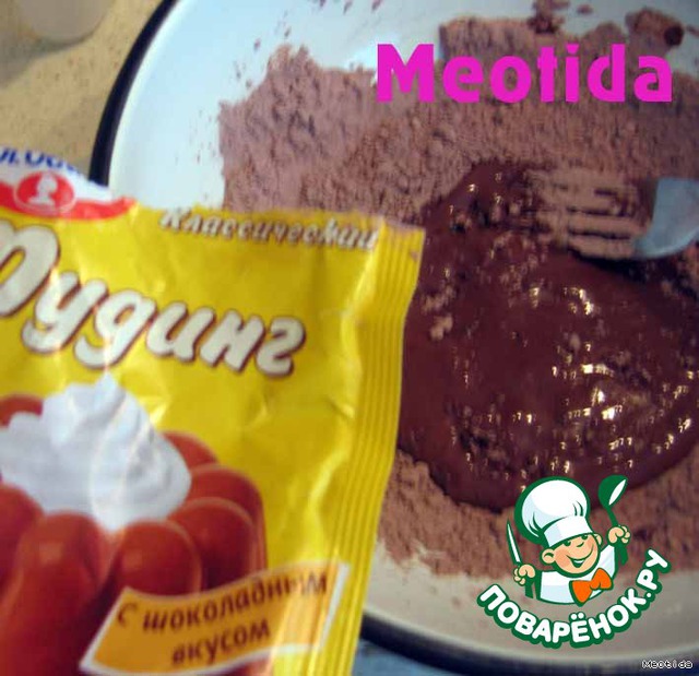 в отдельной миске смешиваем пуддинг с небольшим количеством молока, хорошо размешиваем, чтобы небыло комочков,
