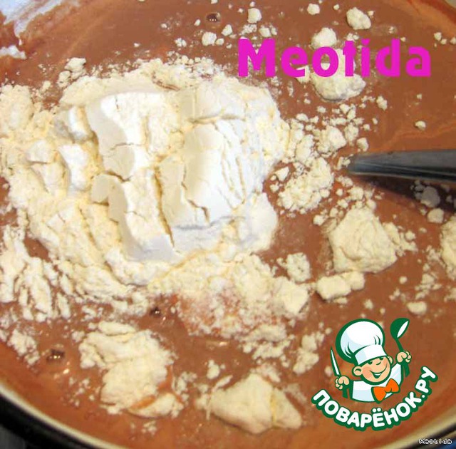 добавляем 1 ч.л. соды, помешиваем и готовим, пока смесь не увеличится в объеме в 2-3 раза.