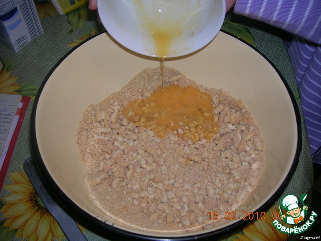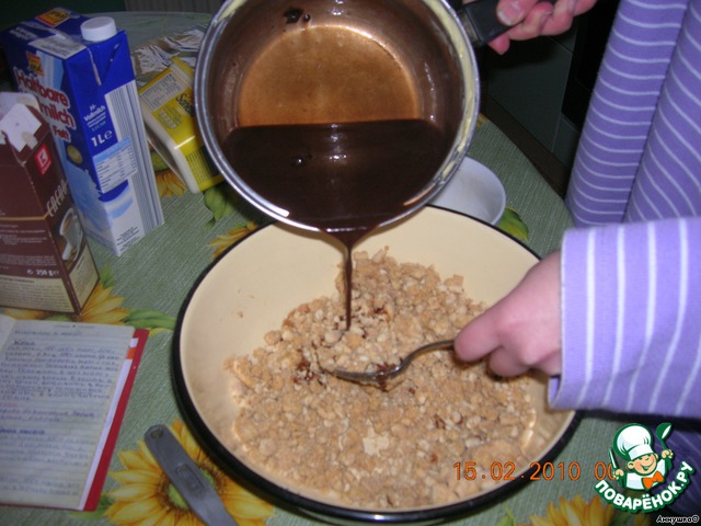 Даём немного остыть и вливаем в печенье. Хорошо перемешиваем.