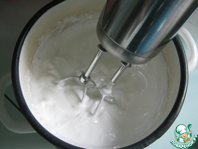 Берём яйца и отделяем белки от желтков. Белки взбиваем в пену, постепенно добавляя сахар. Взбиваем до устойчивых пиков.