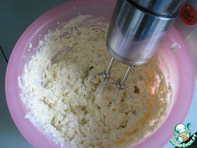 Белки аккуратно добавляем к творожной массе. Взбивать нельзя, смешиваем ложкой круговыми движениями.