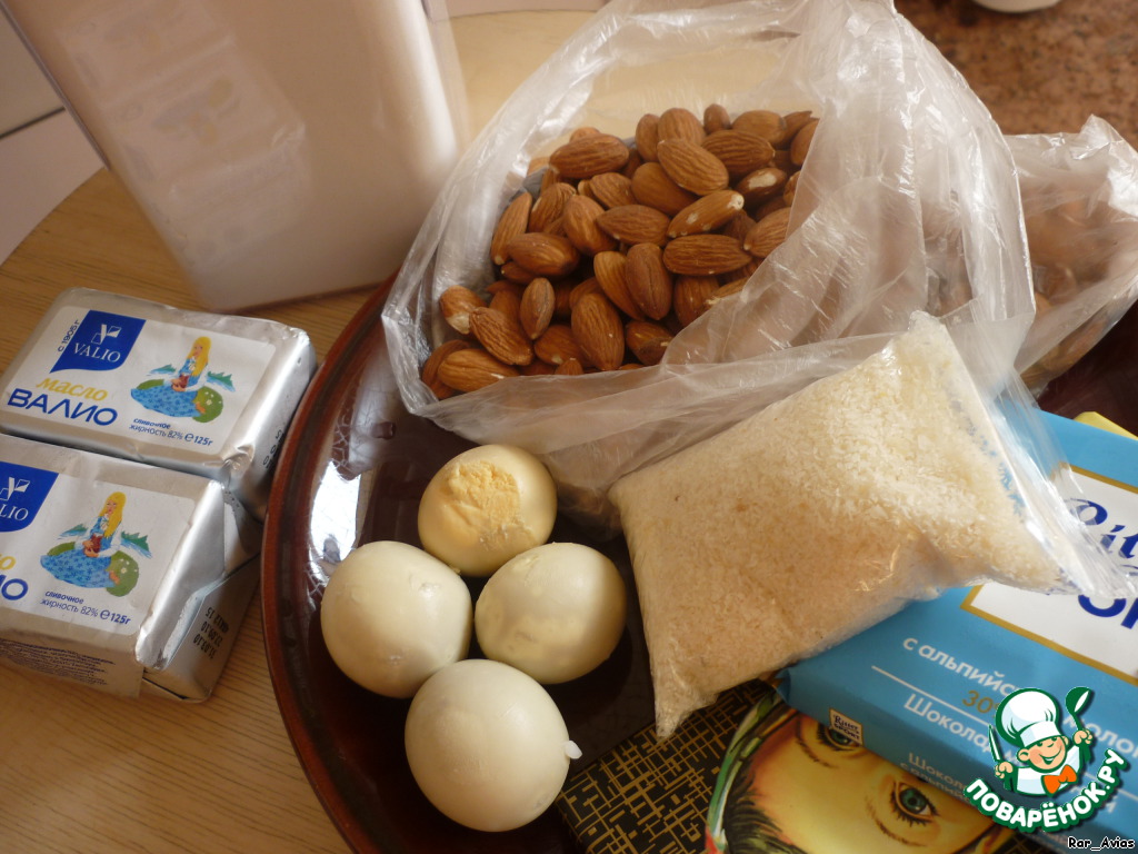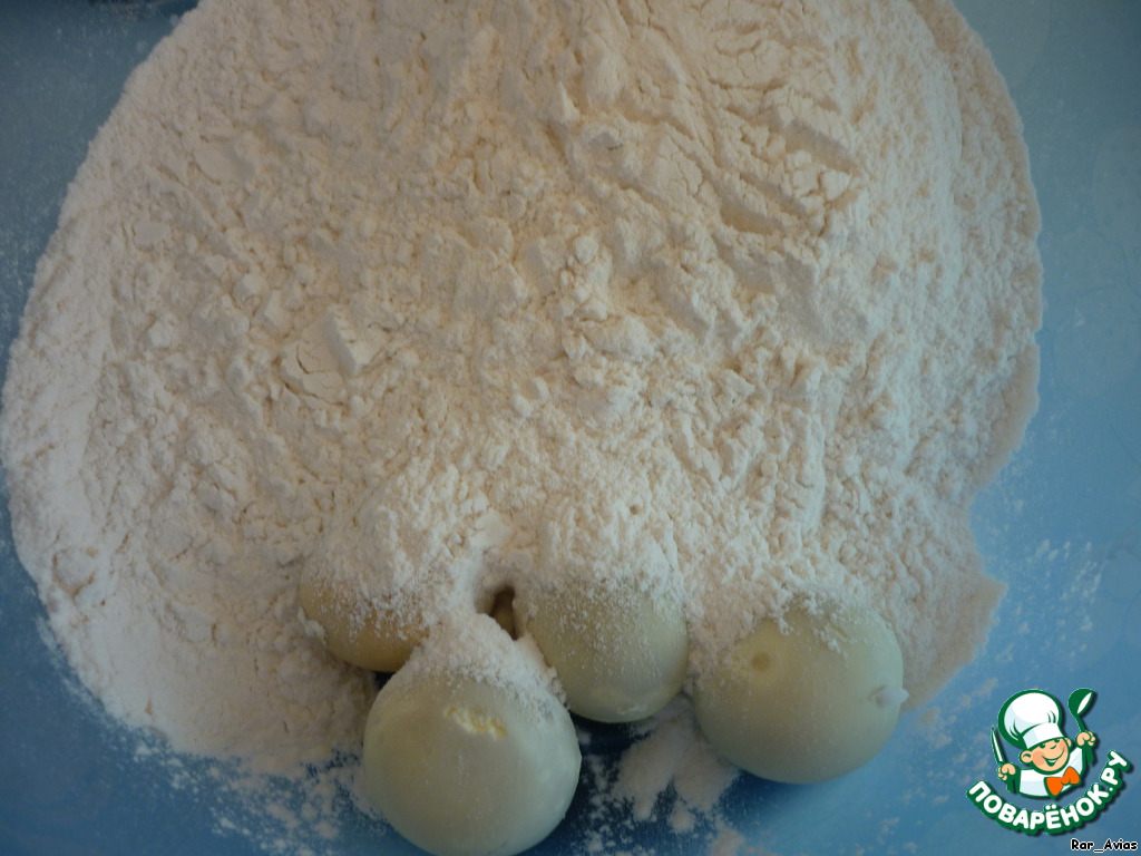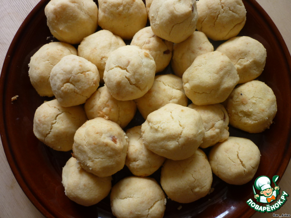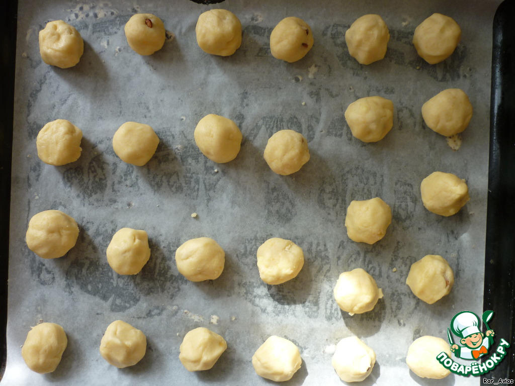 Скатываем небольшие шарики, в середину каждого кладем миндальный орешек.