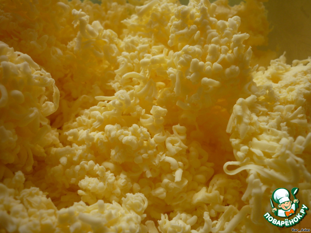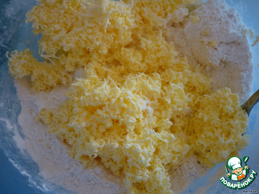 Предварительно замороженное сливочное масло натереть на мелкой терке
