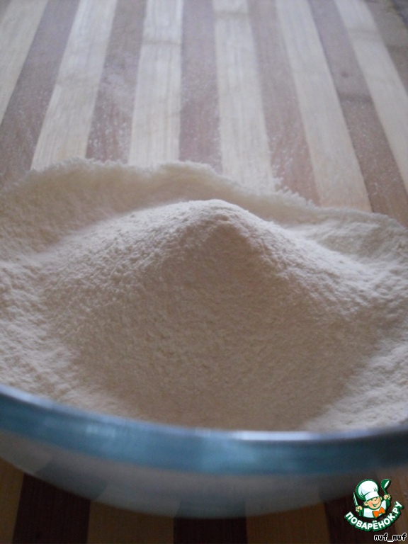 Добавить просеянную муку с солью и разрыхлителем. Всё хорошо вымешать, скатать в шар и затянуть плёнкой. Убрать в холодильник минимум на 3-4 часа, лучше на ночь.