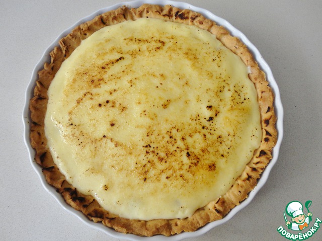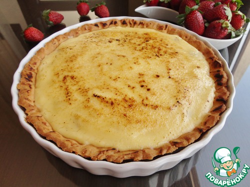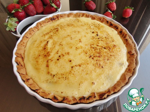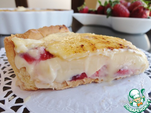 | Очень вкусный, нежный тарт от Стельоса Парльяроса. Делается он просто. Этот тарт похож на классический, но фрукты в нем спрятаны под ароматнейшим кремом, который карамелизируется, как в крем-брюле. |