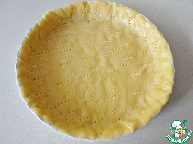 Укладываем тесто в форму для тарта диаметром 24 см. Излишки теста можно завернуть и хранить в холодильнике в течение недели.
