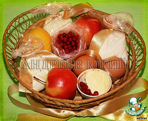 Продукты для приготовления творожной запеканки с яблоками и брусникой.