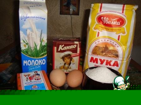 Для приготовления крема смешать сахар, какао, муку, яйцо, молоко.