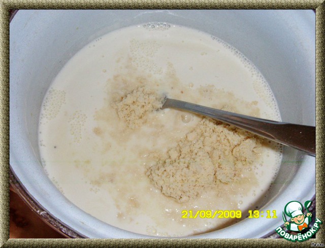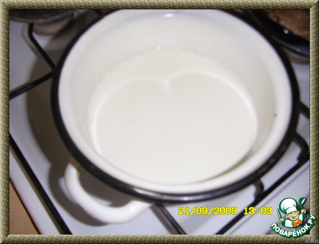 Молоко поставить на огонь. Как только оно закипит, убрать с огня