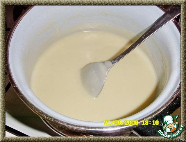 и вливать тонкой струйкой в яичную массу. Мешайте постоянно, до тех пор, пока масса не станет кремообразной и однородной.