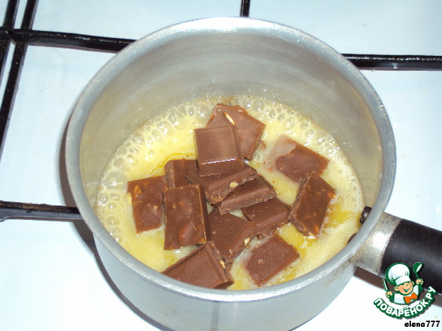 Для удивительно вкусной начинки растопить 50г сливочного масла, 50г сгущёнки и 100г шоколада.