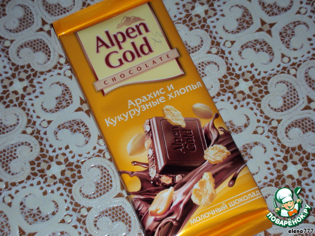 Шоколад можно взять любой, какой вам нравится. Я взяла вот такой - с арахисом и кукурузными хлопьями.