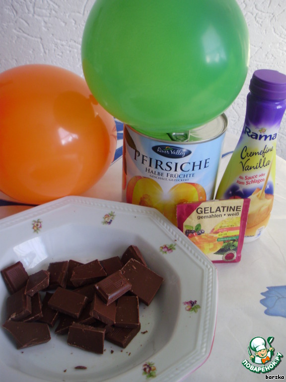 Остатки шоколада, естественно, бодренько подъедаются, а в это время мама открывает банку с консервированными персиками.
